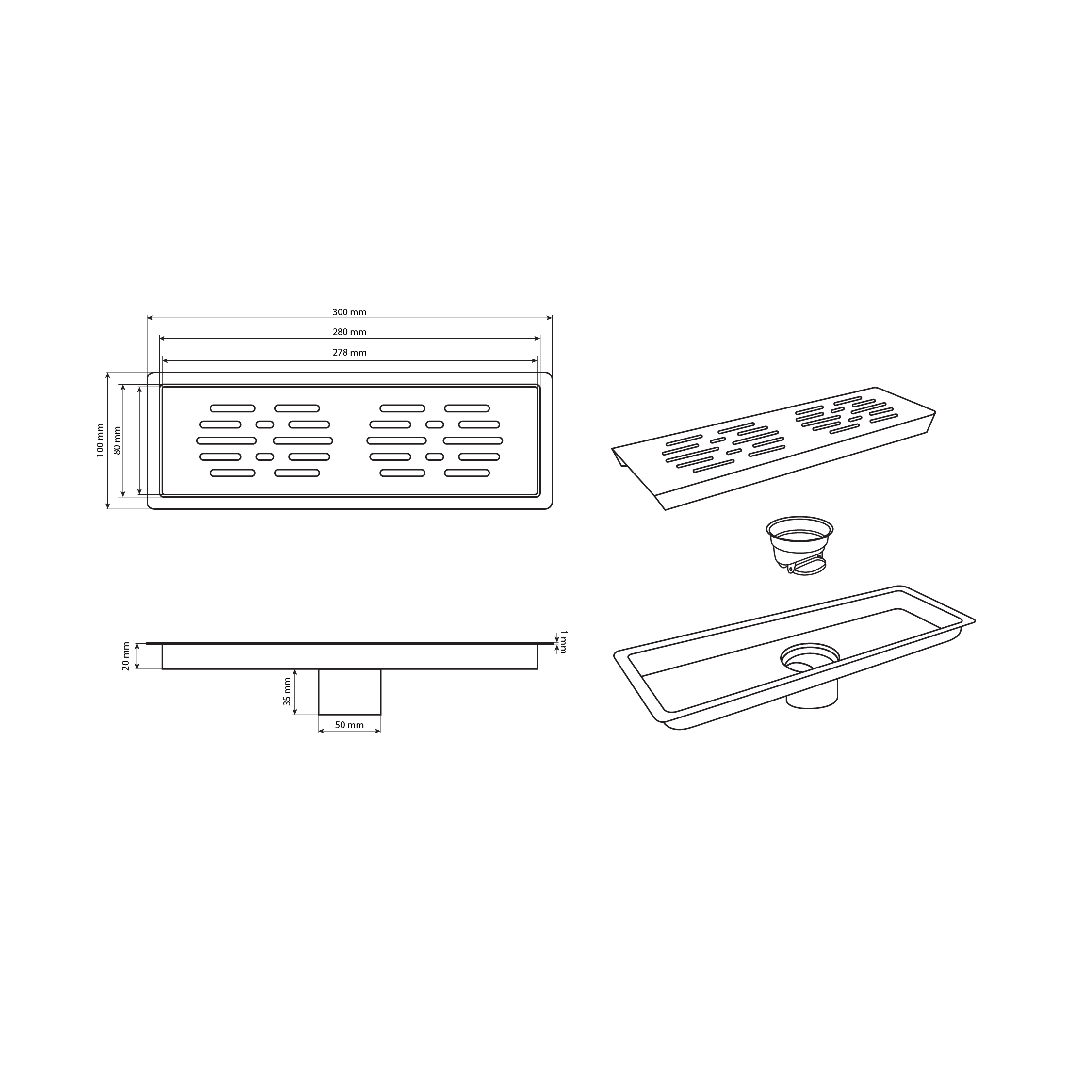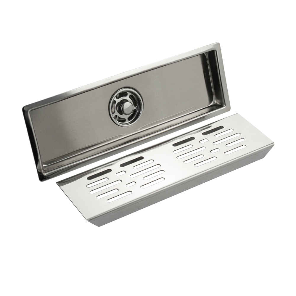 Душевой сливной трап из нержавеющей стали, хромированный, линейный, вертикальный с сухим затвором – это специальный элемент сантехнических коммуникаций, предназначенный для отвода воды в систему канализации. Как правило, душевые трапы устанавливаются непосредственно в пол. Благодаря небольшим габаритам и высоте душевые трапы идеальны для установки в душевых зонах. Это важно для организации пространства, где нет возможности установить классическую ванну: в малогабаритных квартирах, студиях, совмещенных санузлах и т.п.Габаритные размеры: высота 55 мм, ширина 100 мм, длина 300 мм, выход в канализацию 50 мм. Вес - 0,700 кг, объём - 0,00250 м3