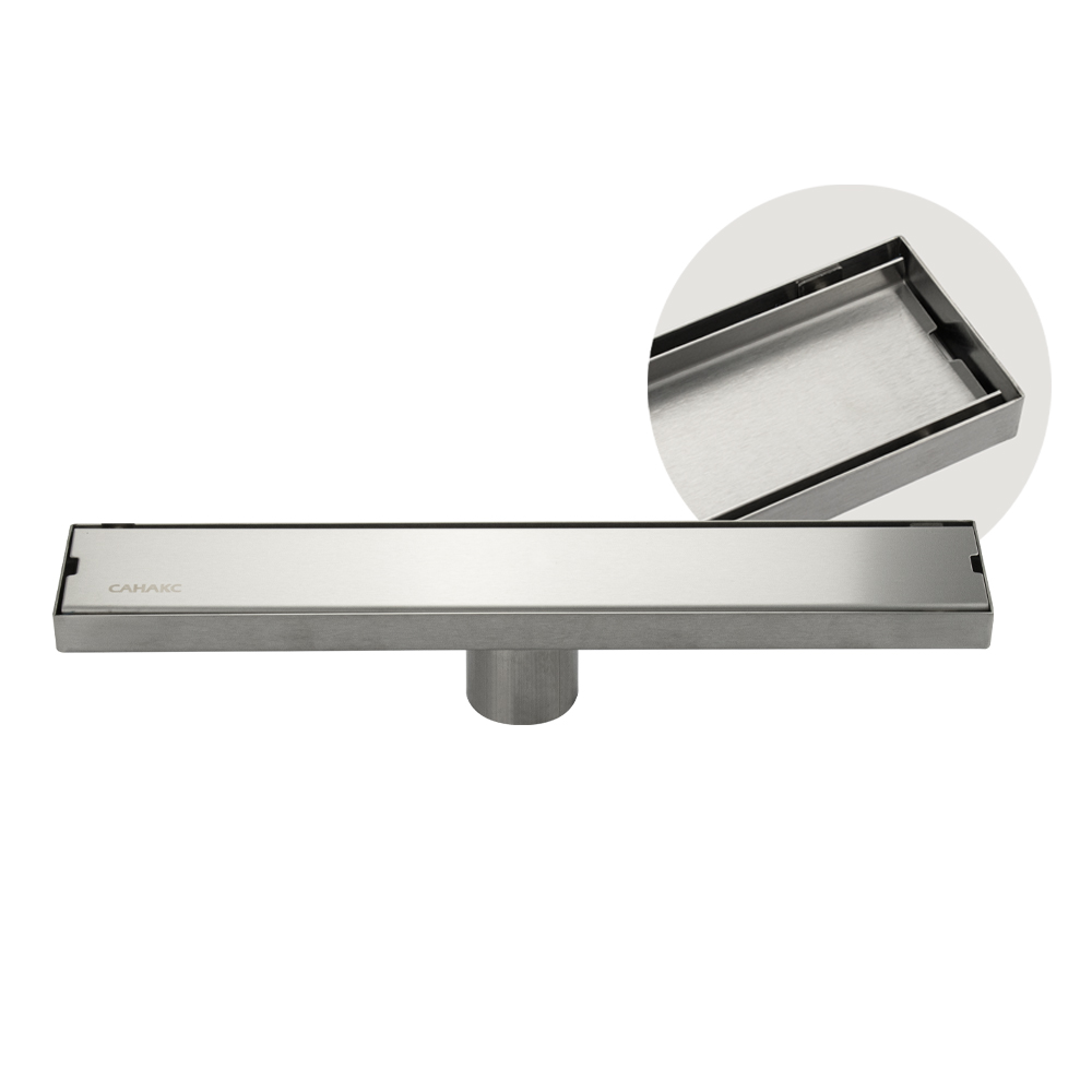 Душевой сливной трап из нержавеющей стали, линейный, вертикальный с гидрозатвором, крышка литая двухсторонняя, с возможностью вставки плитки– это специальный элемент сантехнических коммуникаций, предназначенный для отвода воды в систему канализации. Как правило, душевые трапы устанавливаются непосредственно в пол. Благодаря небольшим габаритам и высоте душевые трапы идеальны для установки в душевых зонах. Это важно для организации пространства, где нет возможности установить классическую ванну: в малогабаритных квартирах, студиях, совмещенных санузлах и т.п. Габаритные размеры: высота 70 мм, ширина 70 мм, длина 400 мм, выход в канализацию 50 мм. Вес - 1,000 кг, объём - 0,00250 м3.