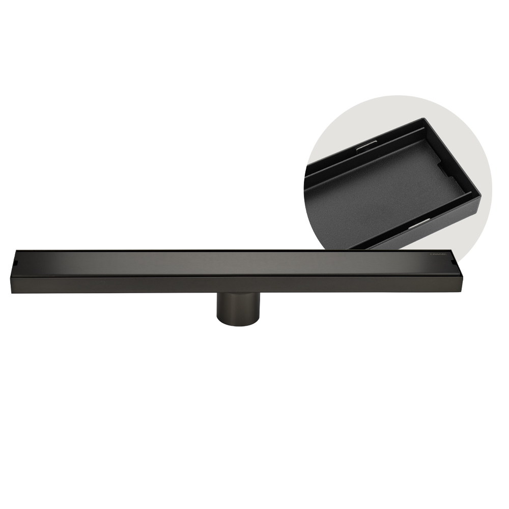 Душевой сливной трап из нержавеющей стали, цвета графит, линейный, вертикальный с гидрозатвором, крышка литая двухсторонняя, с возможностью вставки плитки– это специальный элемент сантехнических коммуникаций, предназначенный для отвода воды в систему канализации. Как правило, душевые трапы устанавливаются непосредственно в пол. Благодаря небольшим габаритам и высоте душевые трапы идеальны для установки в душевых зонах. Это важно для организации пространства, где нет возможности установить классическую ванну: в малогабаритных квартирах, студиях, совмещенных санузлах и т.п. Габаритные размеры: высота 70 мм, ширина 70 мм, длина 500 мм, выход в канализацию 50 мм. Вес - 1,200 кг, объём - 0,00330 м3.