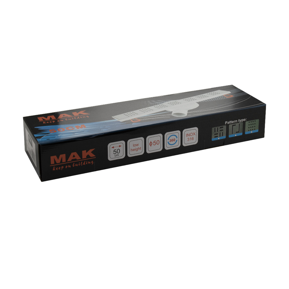 Душевой сливной трап из нержавеющей стали и пластика АБС, линейный, горизонтальный с гидрозатвором и с регулируемыми по высоте винтами, это специальный элемент сантехнических коммуникаций, предназначенный для отвода воды в систему канализации. Как правило, душевые трапы устанавливаются непосредственно в пол. Благодаря небольшим габаритам и высоте душевые трапы идеальны для установки в душевых зонах. Это важно для организации пространства, где нет возможности установить классическую ванну: в малогабаритных квартирах, студиях, совмещенных санузлах и т.п. Габаритные размеры: высота 75 мм, ширина 65 мм, длина 500 мм, выход в канализацию 50 мм. В комлекте вращающийся слив на 360°. Вес - 0,75 кг, объём - 0,00670 м3.