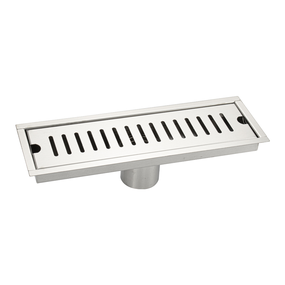 Душевой сливной трап из нержавеющей стали, линейный, вертикальный с гидрозатвором – это специальный элемент сантехнических коммуникаций, предназначенный для отвода воды в систему канализации. Как правило, душевые трапы устанавливаются непосредственно в пол. Благодаря небольшим габаритам и высоте душевые трапы идеальны для установки в душевых зонах. Это важно для организации пространства, где нет возможности установить классическую ванну: в малогабаритных квартирах, студиях, совмещенных санузлах и т.п. Габаритные размеры: высота 70 мм, ширина 100 мм, длина 300 мм, выход в канализацию 50 мм. Вес - 0,700 кг, объём - 0,00281 м3.
