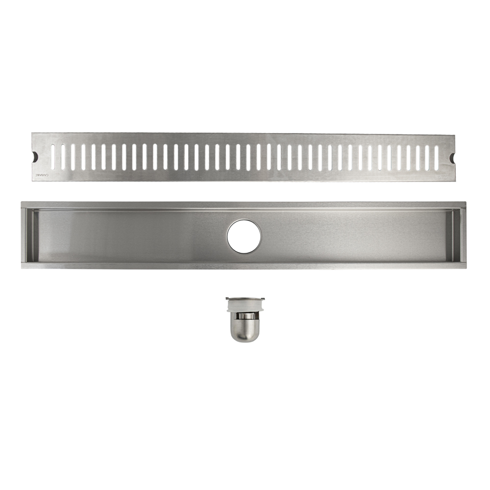 Душевой сливной трап из нержавеющей стали, линейный, вертикальный с гидрозатвором – это специальный элемент сантехнических коммуникаций, предназначенный для отвода воды в систему канализации. Как правило, душевые трапы устанавливаются непосредственно в пол. Благодаря небольшим габаритам и высоте душевые трапы идеальны для установки в душевых зонах. Это важно для организации пространства, где нет возможности установить классическую ванну: в малогабаритных квартирах, студиях, совмещенных санузлах и т.п. Габаритные размеры: высота 70 мм, ширина 100 мм, длина 700 мм, выход в канализацию 50 мм. Вес - 1.3 кг, объём - 0.00624 м3.