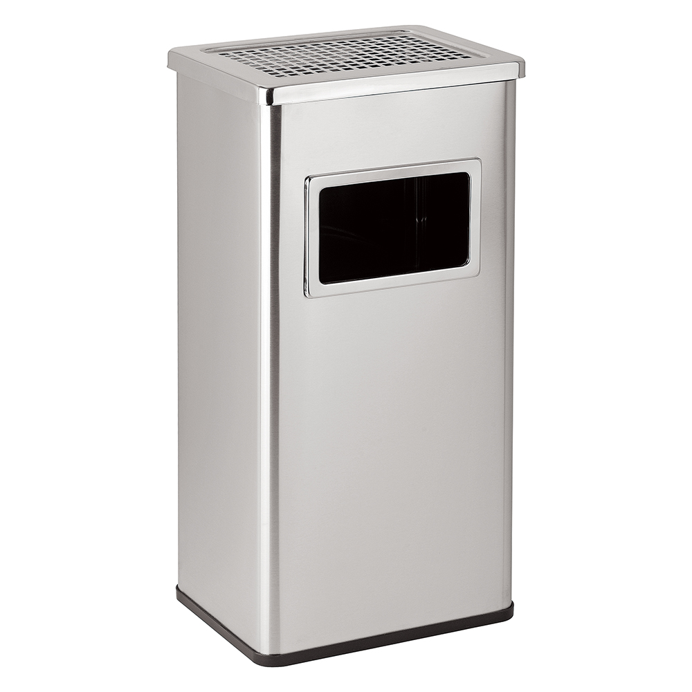 Урна с пепельницей квадратная, из нержавеющей стали SUS 410, цвет сатин. Верх состоит из съемной решетки с поддоном. Прочная и надежная для окурков и мелкого мусора идеально подходит для использования в офисах, общественных местах и других учреждениях. Изготовлена из нержавеющей стали и покрыта хромом. Благодаря большому объему в 40 л, способна вместить большое количество мусора. Легкость и компактность корзины позволяет перемещать её с одного места на другое. Габаритные размеры: высота 610 мм, ширина 300 мм, глубина 240 мм. Вес - 3,900 кг, объём - 0,05600 м3.