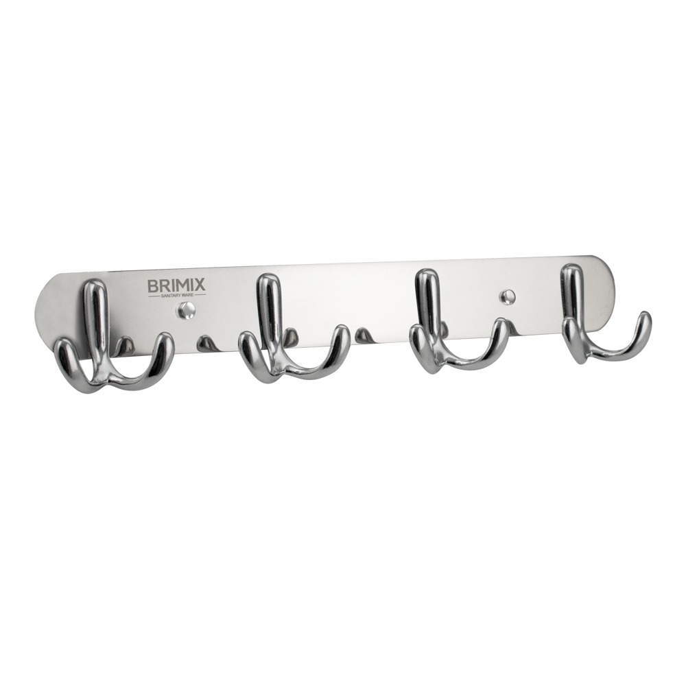 Вешалка - держатель для принадлежностей, металлический, хромированный, с четырьмя двойными крючками. Изготовлен из прочной нержавеющей стали марки SUS 304 с хромированным покрытием, которое придает безупречный стильный вид и долговечность. Хромированное покрытие очень стойко переносит истирания и обеспечивает зеркальный блеск изделия. На держателе с легкостью можно размещать вещи для сушки или вешать, как полотенца, так и одежду перед походом в душ. Идеально подойдет не только для ванной, но и для кухни, а также для дачи или гаража - при необходимости на держатель можно вешать любые предметы. Изделие крепится к стене с помощью дюбелей и саморезов (входят в комплект). Габаритные размеры: длина 290 мм, высота 55 мм, глубина 35 мм. Вес - 0,300 кг, объём - 0,00050 м3.