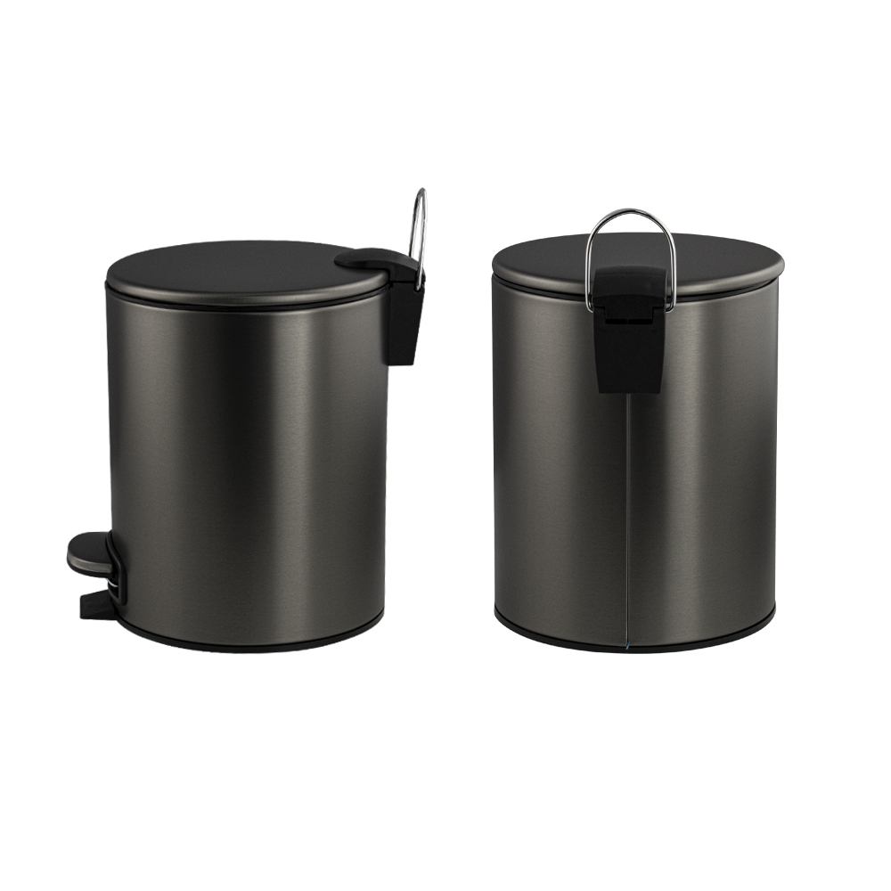 Ведро для мусора с педалью и откидной крышкой с функцией микролифт, прекрасно подойдет для ванной комнаты, туалета или кухни и офиса. Нержавеющая сталь SUS 410. Ведро оснащено пластиковым гигиеническим контейнером и плавным механизмом поднятия - опускание крышки, при помощи нажатия на педаль. Объём ведра 5 литров. Отличное решение для утилизации мелкого бытового мусора. Наличие крышки обеспечивает защиту от неприятных запахов и распространения бактерий, а педальная система открывания позволяет не прикасаться к баку руками. Благодаря современному дизайну ведро впишется в интерьер любой кухни и ванной комнаты. Преимущества ведра для мусора с педалью: удобно устанавливается и перемещается на любое место; изготовлено из устойчивой к коррозии нержавеющей стали с покрытием цвета графит; пользоваться изделием удобно и гигиенично благодаря педали в нижней части корпуса. Нескользящая пластиковая основа ведра предотвращает повреждение пола. Габаритные размеры: высота 265 мм, диаметр 205 мм. Вес - 0.9 кг, объём - 0,0135