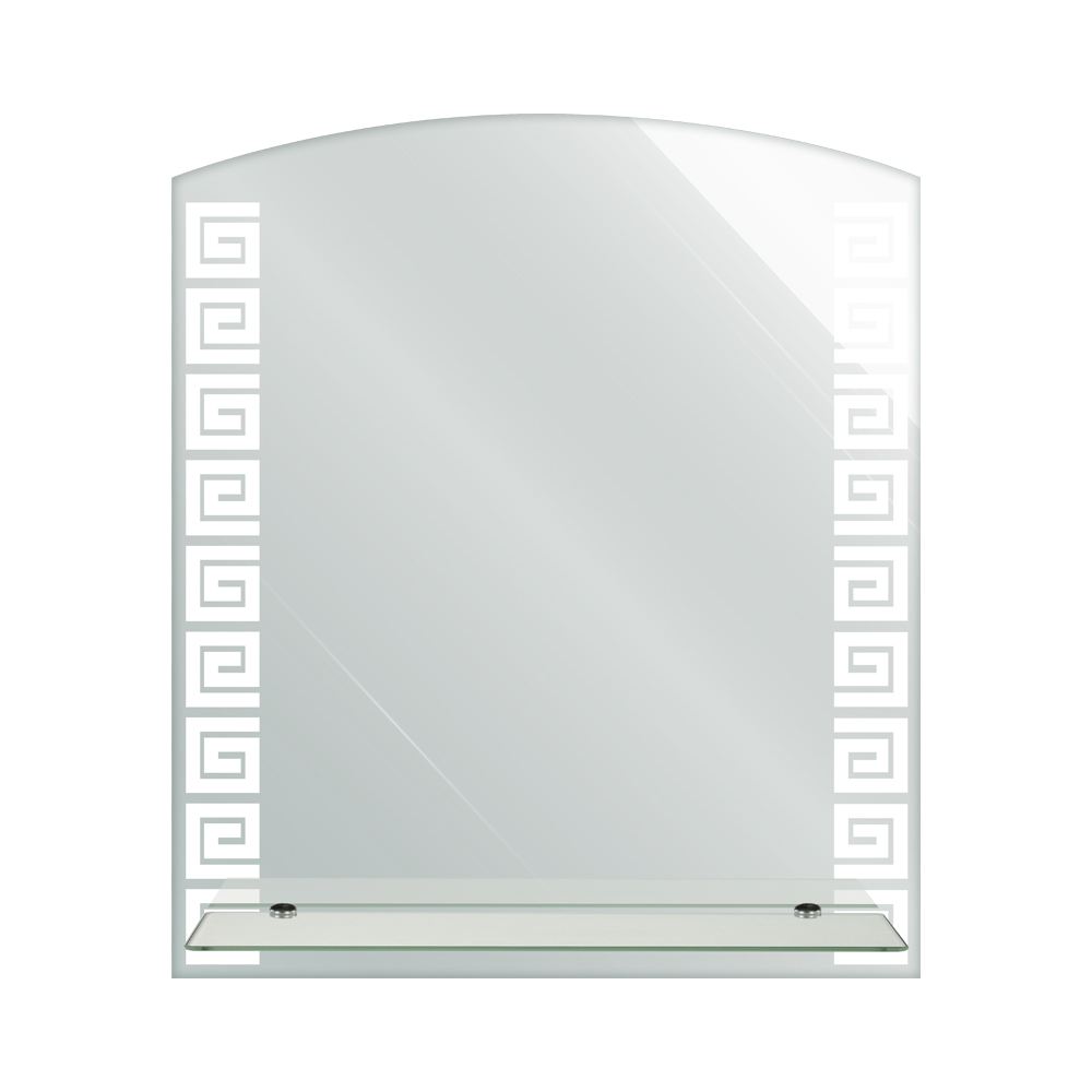 Зеркало с матированным рисунком. Простота и качество делают зеркало практичным дополнением к интерьеру ванной комнаты, прихожей или гардеробной. Модель не занимает много места на стене и благодаря возможности горизонтальной и вертикальной установки, поможет реализовать разные дизайнерские идеи. Особая обработка кромки украшает изделие, придавая ему аккуратный и законченный вид. Зеркало изготовлено из полотна AGC Mirox, толщина зеркального полотна 4 мм. Изделие демонстрирует значительную устойчивость к влажности помещения и перепаду температур. Профессиональный универсальный крепеж в комплекте, подходит для всех типов стен. Габаритные размеры: высота 620 мм, ширина 535 мм, длина полки 500 мм. Вес - 4,100 кг, объём - 0,01000 м3.