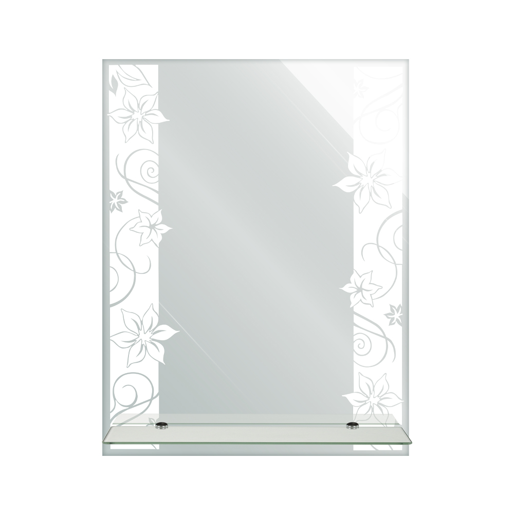 Зеркало с матированным рисунком. Простота и качество делают зеркало практичным дополнением к интерьеру ванной комнаты, прихожей или гардеробной. Модель не занимает много места на стене и благодаря возможности горизонтальной и вертикальной установки, поможет реализовать разные дизайнерские идеи. Особая обработка кромки украшает изделие, придавая ему аккуратный и законченный вид. Зеркало изготовлено из полотна AGC Mirox, толщина зеркального полотна 4 мм. Изделие демонстрирует значительную устойчивость к влажности помещения и перепаду температур. Профессиональный универсальный крепеж в комплекте, подходит для всех типов стен. Габаритные размеры: высота 680 мм, ширина 535 мм, длина полки 500 мм. Вес - 4,600 кг, объём - 0,00500 м3.