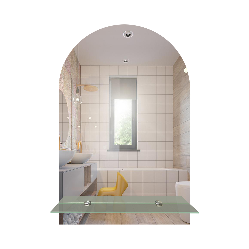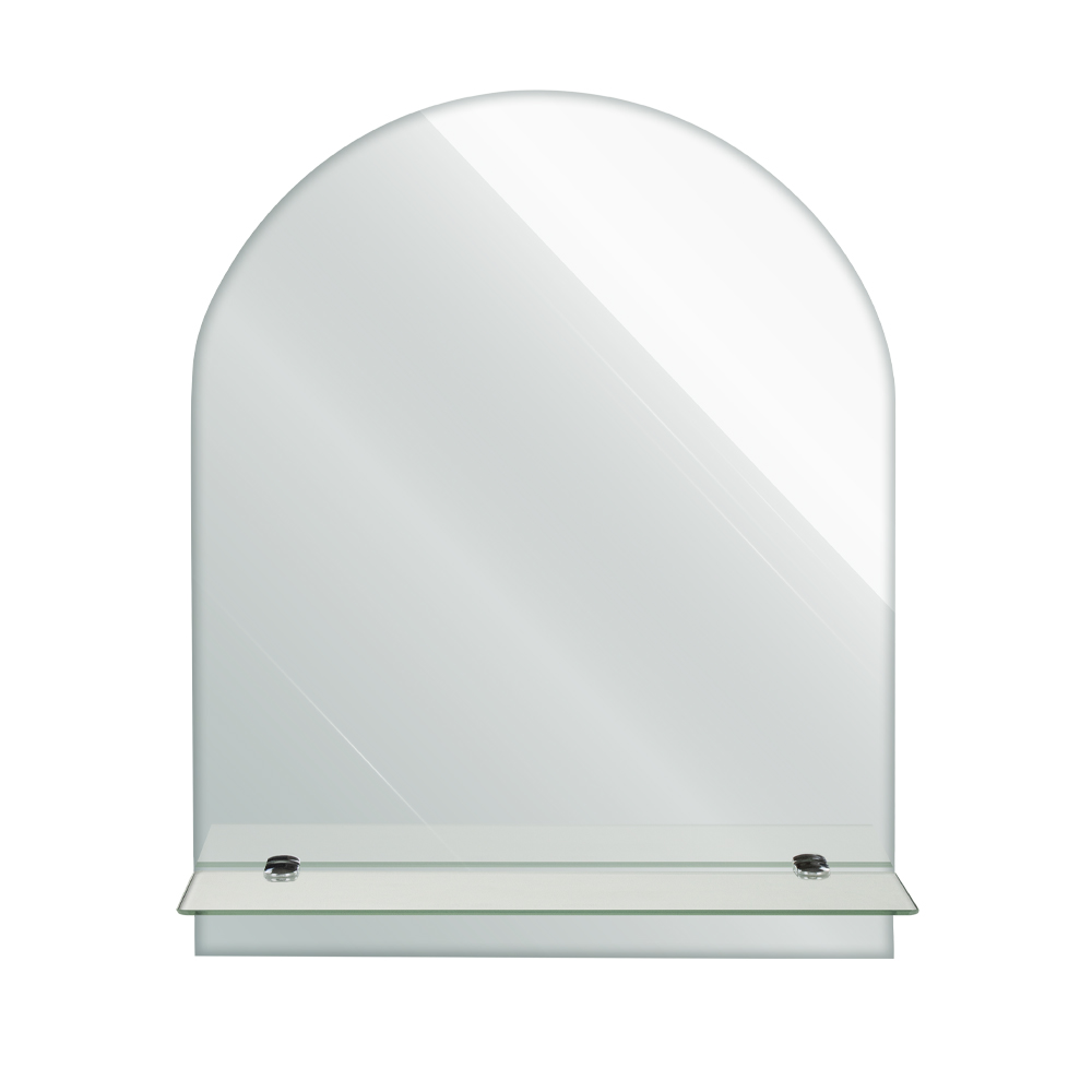 Зеркало закруглённое. Простота и качество делают зеркало практичным дополнением к интерьеру ванной комнаты, прихожей или гардеробной. Модель не занимает много места на стене и поможет реализовать разные дизайнерские идеи. Особая обработка кромки украшает изделие, придавая ему аккуратный и законченный вид. Зеркало изготовлено из полотна AGC Mirox, толщина зеркального полотна 4 мм. Изделие демонстрирует значительную устойчивость к влажности помещения и перепаду температур. Профессиональный универсальный крепеж в комплекте, подходит для всех типов стен. Габаритные размеры: высота 500 мм, ширина 400 мм, длина полки 400 мм. Вес - 2,600 кг, объём - 0,00420 м3